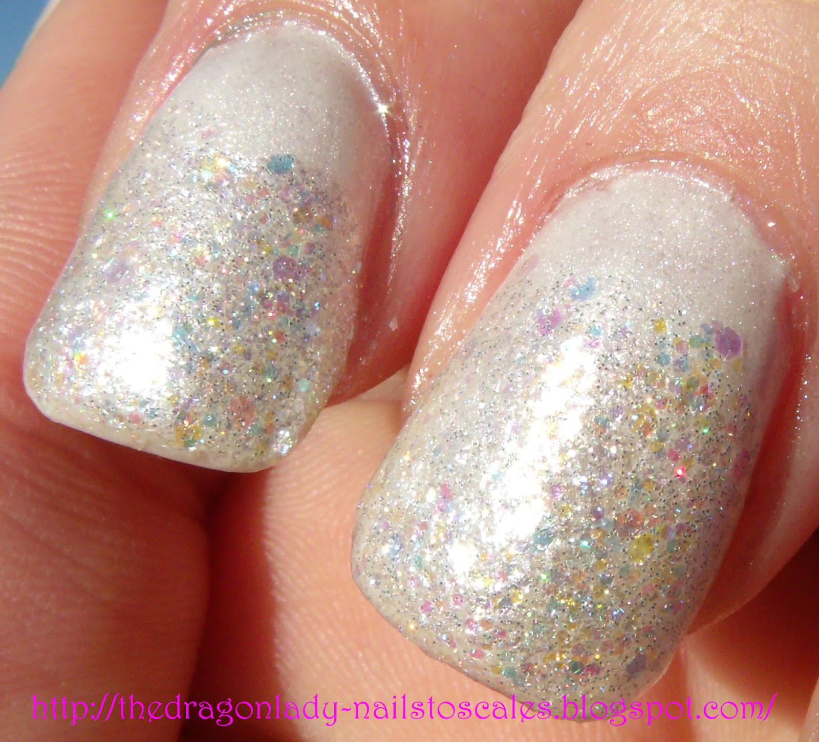 Wishing you all a very Happy New Year's Eve and hope everyone has their resolutions all lined up. I know I don't, LOL! Anyways, here is my last mani of the year, my blingy silver holo glitter extravaganza. I used Sally Hansen Celeb City as my frosty silver foil base color (can see it on my accent nail), then I dipped my nails in some unnamed tub of ultra fine silver holographic nail glitter. Then 2 coats of Seche Vite to encase the glitter and smooth it out. I cannot describe how sparkly this looks in the sun in real life. These picture only capture about a tenth of the sparkle. I used small black beads from a Bundle Monster nail art wheel set for the 2012 and yes, it was a pain in the you-know-what. Enjoy!